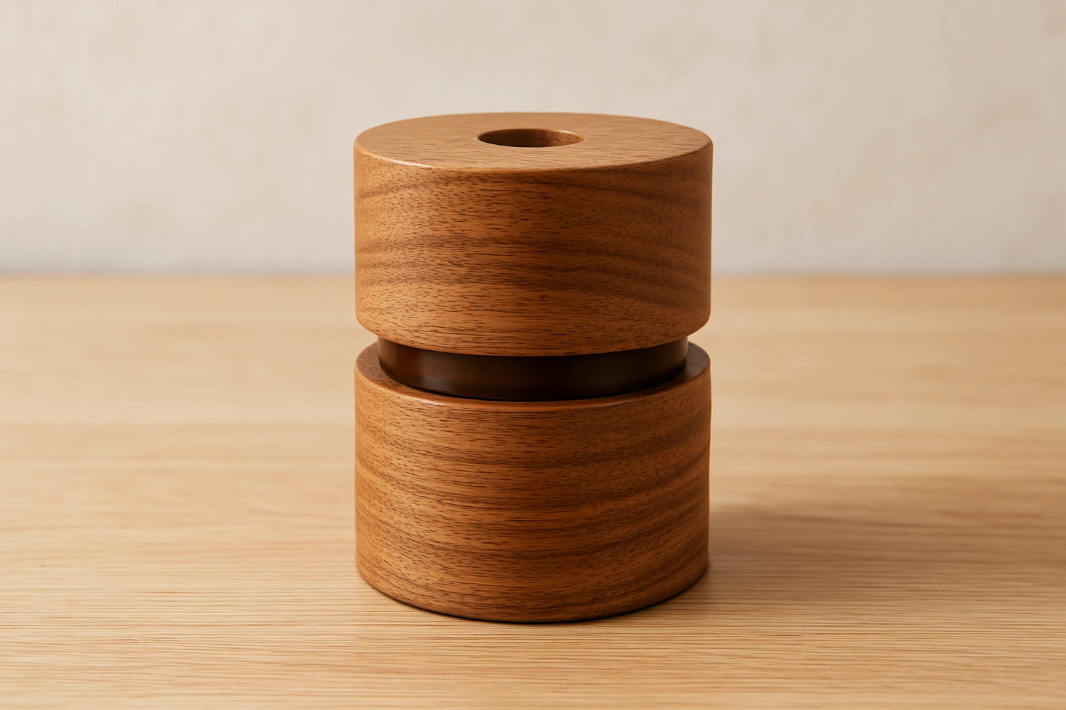 Ένα αντικείμενο που ισορροπεί ανάμεσα στη φυσικότητα και την αισθητική αρμονία. Αυτό το χειροποίητο αρωματικό χώρου από ξύλο οξιάς ξεχωρίζει για τη γλυκιά του γεωμετρία και τον minimal σχεδιασμό του. Ο γυάλινος πυρήνας που διακρίνεται διακριτικά στο κέντρο, φιλοξενεί το άρωμα και δημιουργεί ένα μοναδικό οπτικό παιχνίδι ανάμεσα στο φως και στο υγρό στοιχείο. Ιδανικό για χώρους που αναζητούν πολυτέλεια χωρίς υπερβολές.