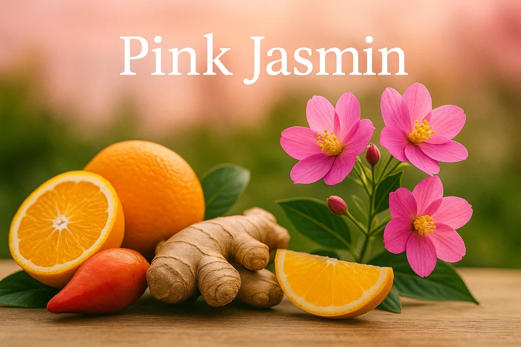 Το Pink Jasmin είναι ένα έντονο και μαγνητικό άρωμα χώρου, όπου οι πικάντικες νότες πορτοκαλιού, ginger και πιπεριού αγκαλιάζονται από λουλουδένιες πινελιές γιασεμιού και άνθους πορτοκαλιάς.